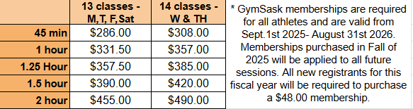 All participants need a 2025-2026 GymSask Membership.